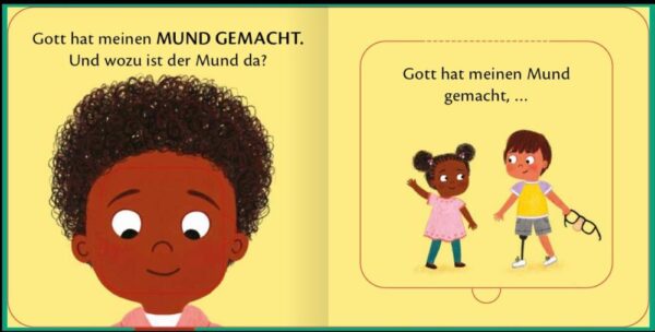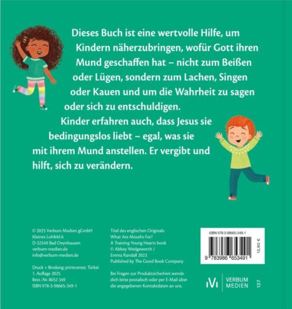 Dieses Buch ist eine wertvolle Hilfe, um Kindern näherzubringen, wofür Gott ihren Mund geschaffen hat – nicht zum Beißen oder Lügen, sondern zum Lachen, Singen oder Kauen und um die Wahrheit zu sagen oder sich zu entschuldigen.