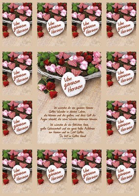 Aufkleber-Grusskarten: Von ganzem Herzen (12 Stk.)