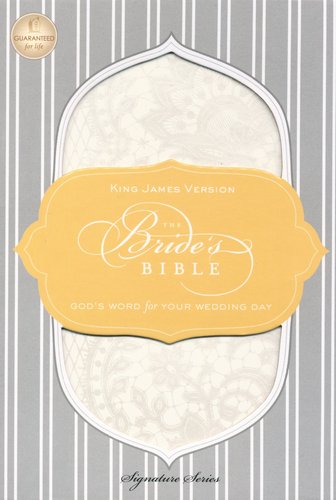 Carry the Word of God on your wedding day! Taking cues from traditional wedding fabrics and creamy vanilla frosting, the KJV Bride’s Bible is bound in elegant white leathersoft and specially designed with a pearlescent lace pattern. Inside, a wedding record section invites the bride to record treasured memories and paste photographs of friends and family. The compact size of the KJV Bride’s Bible allows this keepsake to travel wherever the bride does- even down the aisle! Its stunning design and convenient size make the KJV Bride’s Bible the ideal gift for any bride. Features include: Wedding record section with space to display pictures of family and friends Slips easily into a dress pocket or purse Elegant design.