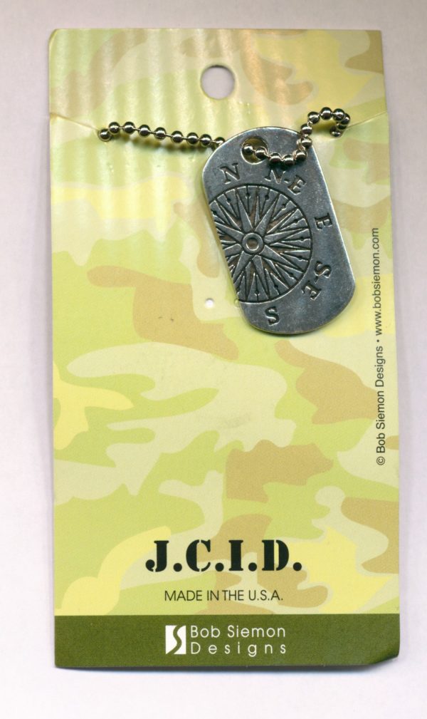 Let God be your compass through life. The detailed, off center compass is paired with the Jeremiah 29:11 verse engraved on the back of the tag. 60 cm ball chain. Made from 100% lead-free pewter. 38 x 22 mm. Made in the U.S.A.