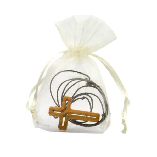 Hübsch verpackt im Organzabeutel. Größe Kreuz ca. 2,7 x 4,2 x 0,6 cm (B/H/T)