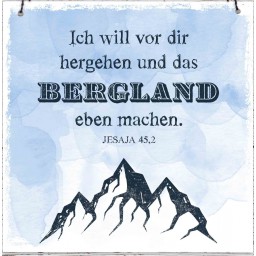 Holzschild: Ich will vor dir hergehen und das Bergland eben machen. Jesaja 45,2