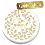 Der Magnet und ein farbiges Kärtchen mit Bibelzitat auf der Rückseite sind zusammen in einer Folie verpackt. Handmade by Come & See vor Ort in Deutschland. Text auf dem Kärtchen: Für den Glücklichen ist das Leben ein Fest. Sprüche 15,15