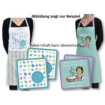 Inhalt: Tasse (Höhe 9 cm, Fassungsvermögen 0,35 l, aus Porzellan, mit farbigem Allover-Text, spülmaschinengeeignet, in passender Geschenkbox), Frühstückbrett (23,5 x 14,5 cm, aus Melamin, mit farbigem Allover-Text, abgerundeten Ecken und Anti-Rutsch-Noppen auf der Rückseite), Servietten-Set (12 Stück pro Packung, jew. 40 x 40 cm, aus Airlaid, mit farbigem Allover-Text).