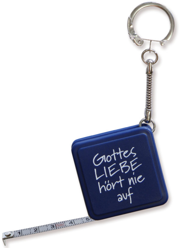 Schlüsselanhänger: Bandmass – Gottes Liebe hört nie auf (blau)