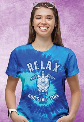 Schreibe die erste Bewertung für „T-Shirt: Relax God’s Got This, Turtle, Shirt, Blue Tie Dye (L)“