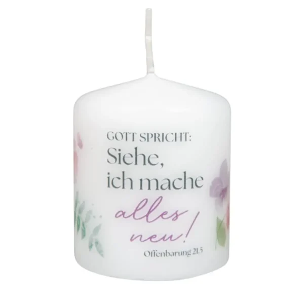 Dekorative kleine Tischkerze mit rundum bedrucktem Jahreslosungsmotiv 2026.