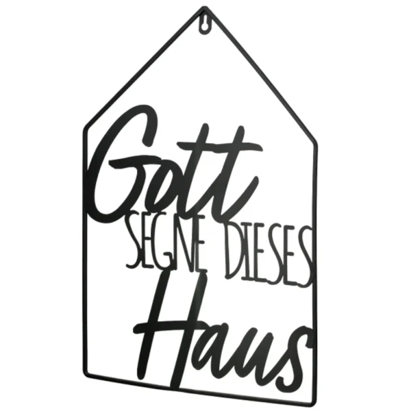 Deko Haussegen zum Aufhängen aus Metall mit Text: „Gott segne diese Haus“.
