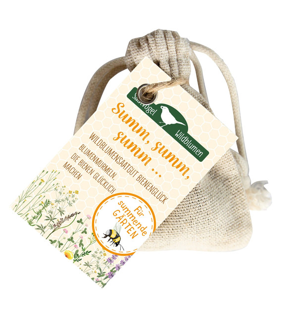 Bei diesem Wildblumensaatgut dreht sich alles um die Biene. Mehr als 25 heimische Nektarpflanzen (Katzenminze, Sonnenhut, Kornblumen u. a.) bieten den summenden Freunden eine reichhaltige Mahlzeit. Für den eigenen Garten oder auch für den Blumentopf auf der Terrasse oder dem Balkon.